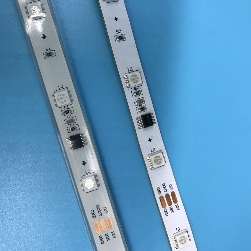12v programmable led strip is with IC WS2811 outside, each 3 rgb chips addressable.