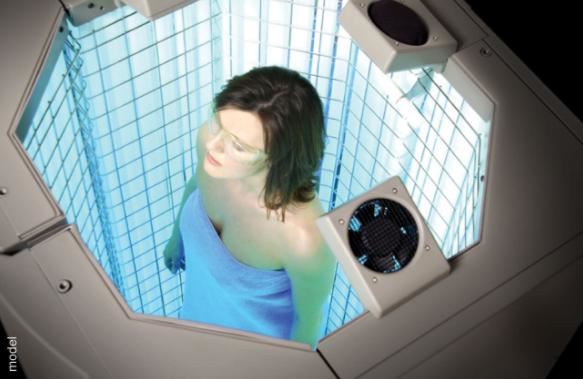 UVB phototherapy refers to irradiation with short-wave ultraviolet rays. To treat the whole body, unclothed patients stand in specially designed cabinets equipped with fluorescent tubes.